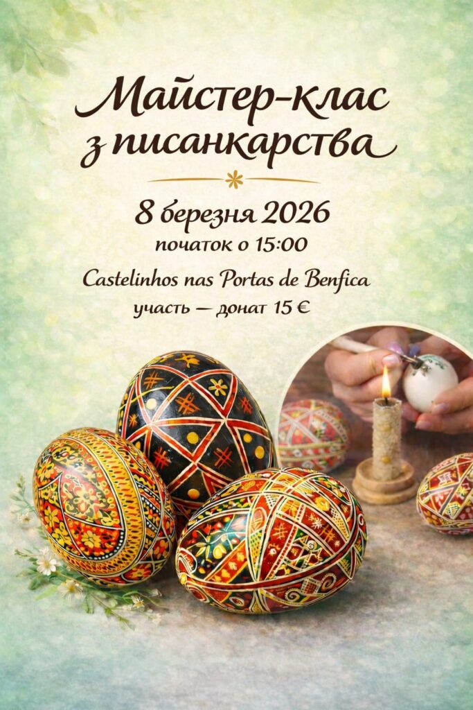 Товариство українок Португалії з великою радістю запрошує вас на МАЙСТЕР-КЛАС З ПИСАНКАРСТВА — подію, де традиція оживає в руках, а тепло передається від серця до серця.
